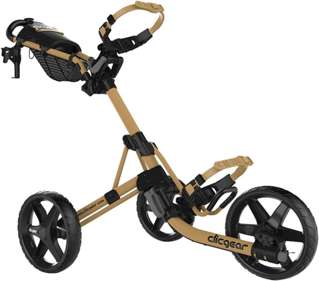 Clicgear Chariot de Golf 4.0, Couleur : MarronLevier de frein facile à soulever ; quatre languettes sur la console pour un montage facile des accessoires ; Console extra profonde ; bouton poussoir pour verrouillage de roue avant ; cadre léger en aluminium de qualité aéronautique Poche en maille pour un rangement supplémentaire ; porte-boissons et parapluies inclus ; roues avec freins Posi-Lock ; Selle supérieure réglable, carte de score et porte-crayon, sangles de sac en silicone, design pliable super compact Dimensions plié : longueur = 38 cm, largeur = 33 cm, hauteur = 60 cm ; construction extrêmement durable299,00 €